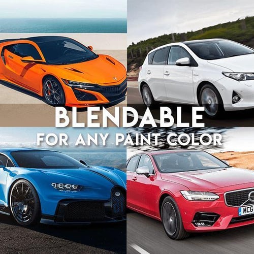 Blendable for any car paint color. Works on various surfaces including wheels, chrome, paint, metal, plastic, rubber, leather, engine and even carpet.